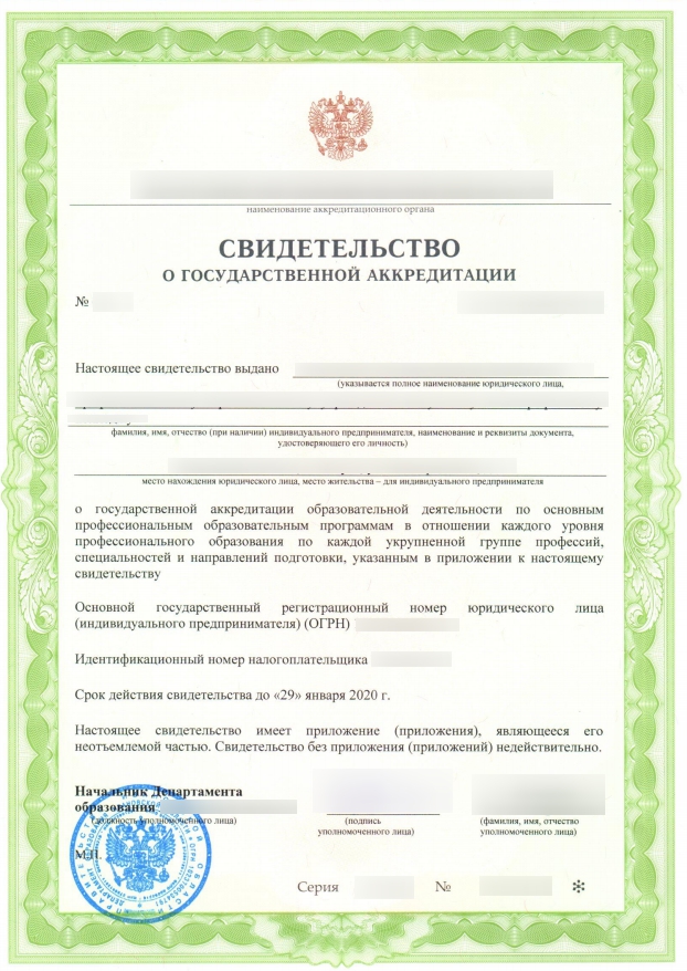 Информация о лицензии на осуществление образовательной деятельности